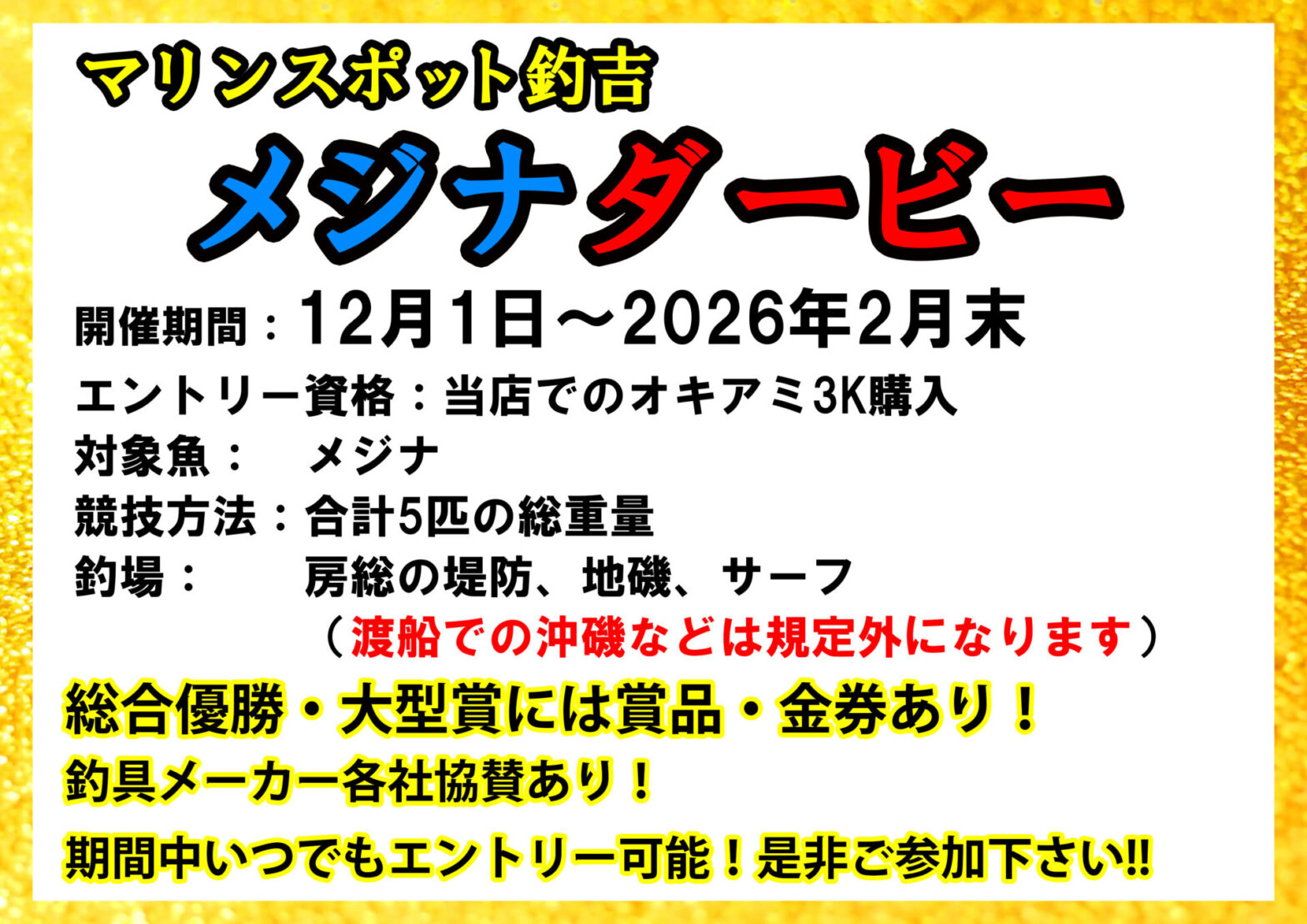 ※黒鯛ダービーは3月から開催予定です。
